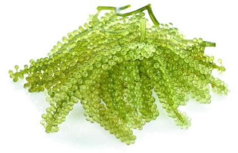 바다포도는 옥덩굴류 해초의 일종으로, 일본 오키나와, 말레이시아, 필리핀 등지의 아열대 지역 근해에서 재배되는 해초인데요. 일본 오키나와의 5대 해초 중 하나로 지역을 대표하는 특산물로 알려져 있으며, 수확을 한 이후에는 신선도를 유지하기 위해 바닷물에 담가 놓는다는 특성을 가지고 있습니다. 바다포도는 일본어인 우미부도라고 불리기도 하며, 영어권에서는 철강상어알인 캐비어와 비슷하다고 하여 그린 캐비어, 바다포도라는 의미로 씨그레이프라는 다양한 명칭으로도 불리고 있습니다.