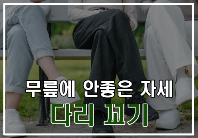 무의식적으로 습관화된 다리 꼬기도 무릎 관절의 손상에 많은 영향을 주기 때문에 경계를 해야 할 자세입니다. 다리를 꼰 상태에서는 체중이 앞쪽으로 쏠리고, 이에 따라 무릎의 주변 근육과 인대 부분의 과한 압력을 가할 수 있기 때문입니다. 또한 신체 밸런스의 균형이 깨어져 골반 자체를 틀어지게 하고, 한쪽 다리에만 집중적인 압박을 가함에 따라 연골의 손상이 심화될 수 있다고 합니다. 따라서 무릎 건강을 위해서 습관적으로 다리를 꼬는 자세는 최대한 피할 필요가 있겠습니다.