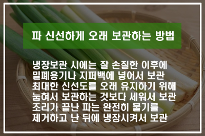 오늘은 파를 보관하는 방법에 대해 살펴보았습니다. 파를 신선하게 보관함에 있어서 앞서 소개된 내용들이 유용한 정보가 되길 바라며 오늘도 행복 가득한 하루 되세요.