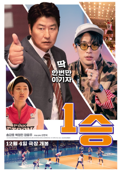 소방관과 같은 날 영화 <1승>도 개봉이 예정되어 있습니다. 이 영화의 주요 줄거리는 프로 경력이 없는 배구선수 출신 우진이 해체 직전의 프로 배구팀인 핑크스톰의 지휘봉을 잡게 되고 1승을 하기 위해 고군분투하는 과정을 그린 이야기라고 합니다. 배우 송강호가 우진 역을 맡았으며, 배우 박정민이 핑크스톰의 구단주이자 재벌 2세인 강정원 역을 맡았습니다. 그리고 여러 영화들에서 개성 넘치는 감초 연기로 많은 사랑을 받은 장윤주가 핑크스톰의 주장인 방수지 역을 소화했다고 합니다. 그 외에 박명훈과 이민지, 차수민 등의 여러 배우들이 합류해 극의 재미를 더욱 풍성하게 채워줄 예정이랍니다. 이 영화는 시놉시스와 예고편에서도 알 수 있듯이 유쾌한 코미디 장르인 만큼, 연말연시 따뜻하고 유쾌한 영화를 보고픈 분들에게는 좋은 영화가 되지 않을까 싶네요.