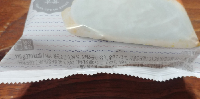 하단 부분에는 주요 영양성분이 표기되어 있는데요. 제조에 들어간 정제소금과 가공유크림 등의 비율이 기재되어 있습니다.