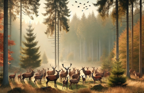사슴이 다른 동물, 예를 들어 노루, 토끼, 새 등과 함께 있는 꿈은 균형과 조화를 상징합니다. 서로 다른 성격이나 환경의 사람들이 조화롭게 협력할 수 있는 시기이며, 다채로운 인간관계나 협업이 성공적으로 이루어질 가능성이 높습니다. 특히 노루와 함께 있다면 순수함과 진심이 인정받게 됩니다.